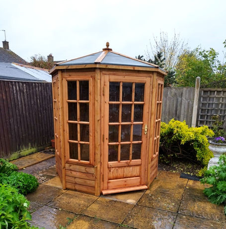 Our Octagonal summerhouses are a delightful addition to any garden. With a unique shape compared to our other summerhouses, this is sure to stand out. Perfect for those warm summer evenings to relax in with a book or as a play den for the children. They can be made to your specifications, whether that’s modern or a cozy cottage aesthetic. Sizes available from 6' x 6' all the way up to 12' x 12'