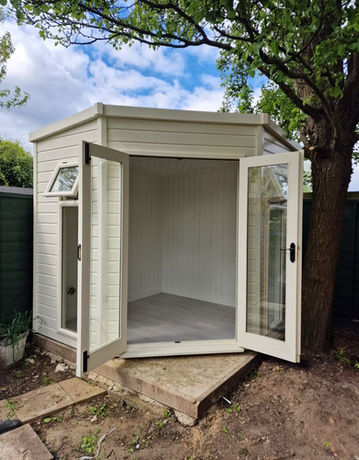 Our corner Pent summerhouse is ideal to utilise a corner of your garden, with sizes available from 6' x 6' all the way up to 12' x 12' you can add that needed extra space without taking up too much room