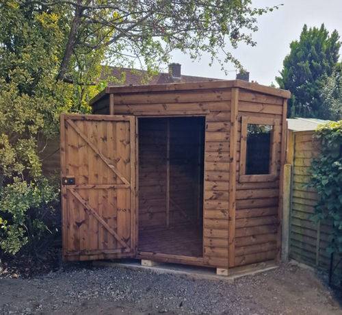 Our Corner Pent sheds are a great addition to any garden for storage or hobby space with sizes available from 6' x 6' all the way up to 12' x 12'